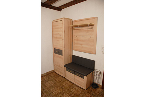 • Garderobe mit Haken und Stellfläche für Schuhe